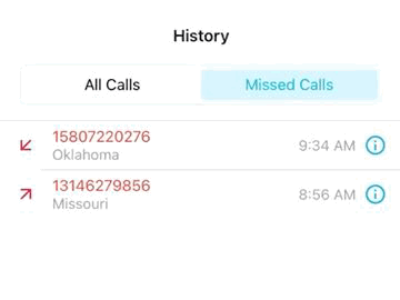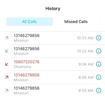 Note: If you’ve added multiple numbers to your app, the History page shows calls from all of them.