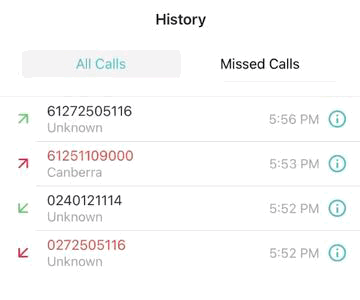 Note: If you have multiple numbers added to your app, the History page displays calls for all of them.