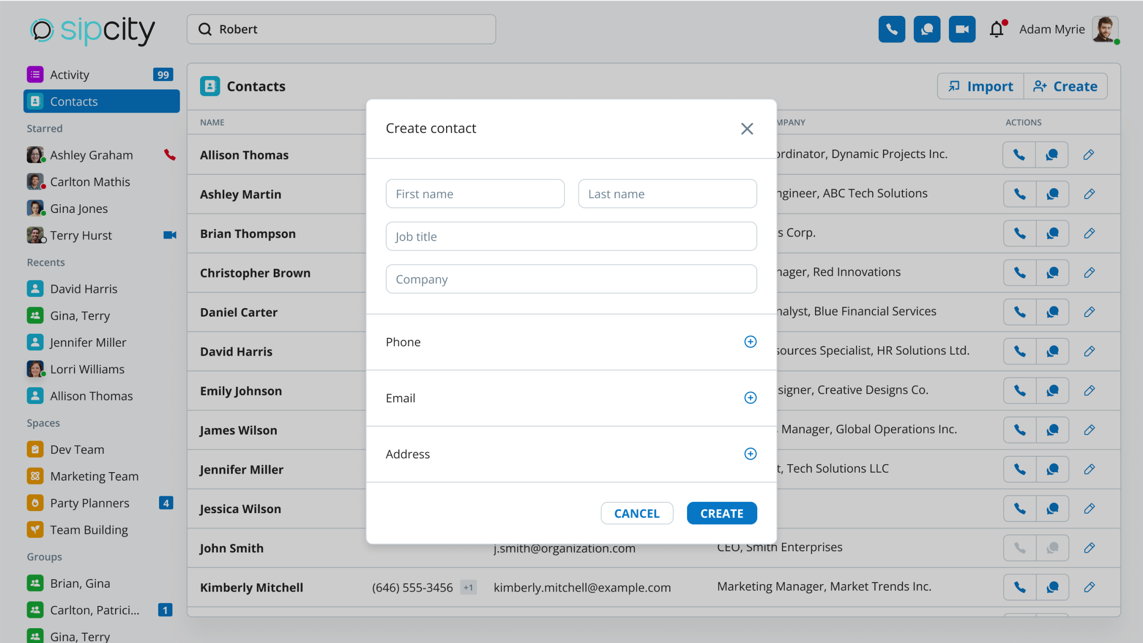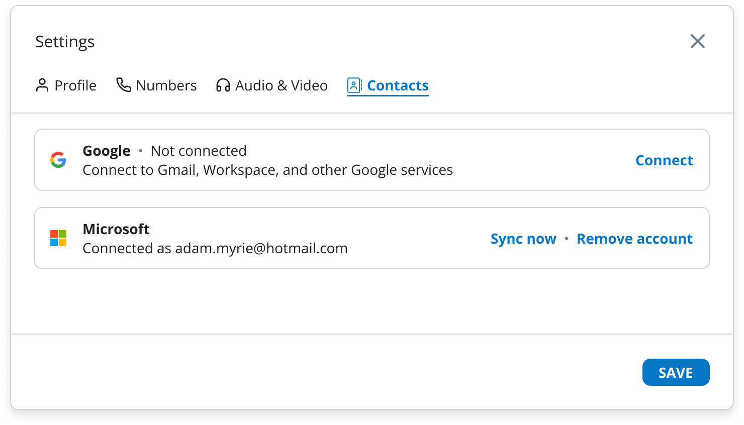 Manage your contacts in one place. Create local contacts, sync contacts from Microsoft or Google, and call them directly from your contact list.