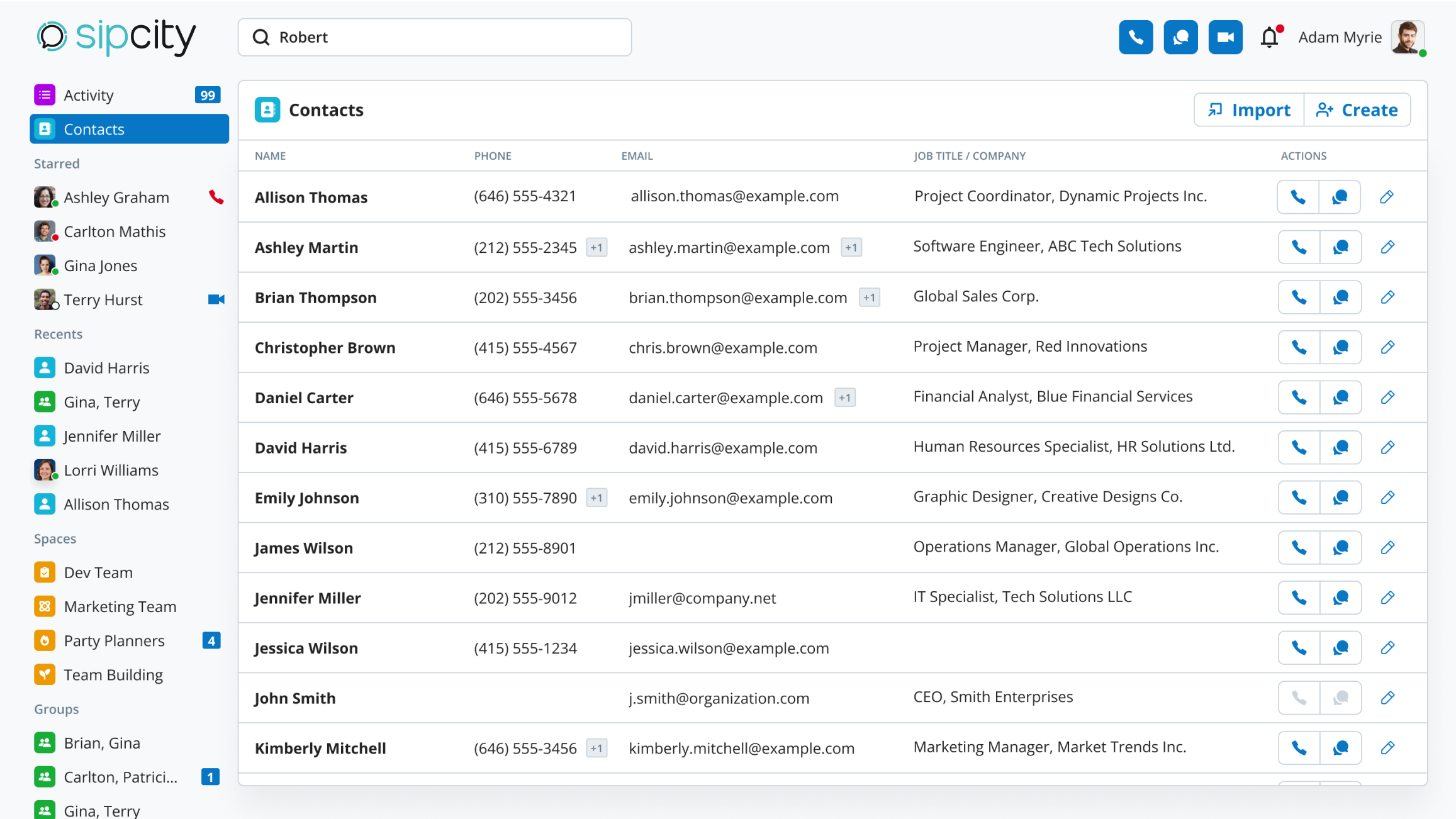 Manage your contacts in one place. Create local contacts, sync contacts from Microsoft or Google, and call them directly from your contact list.