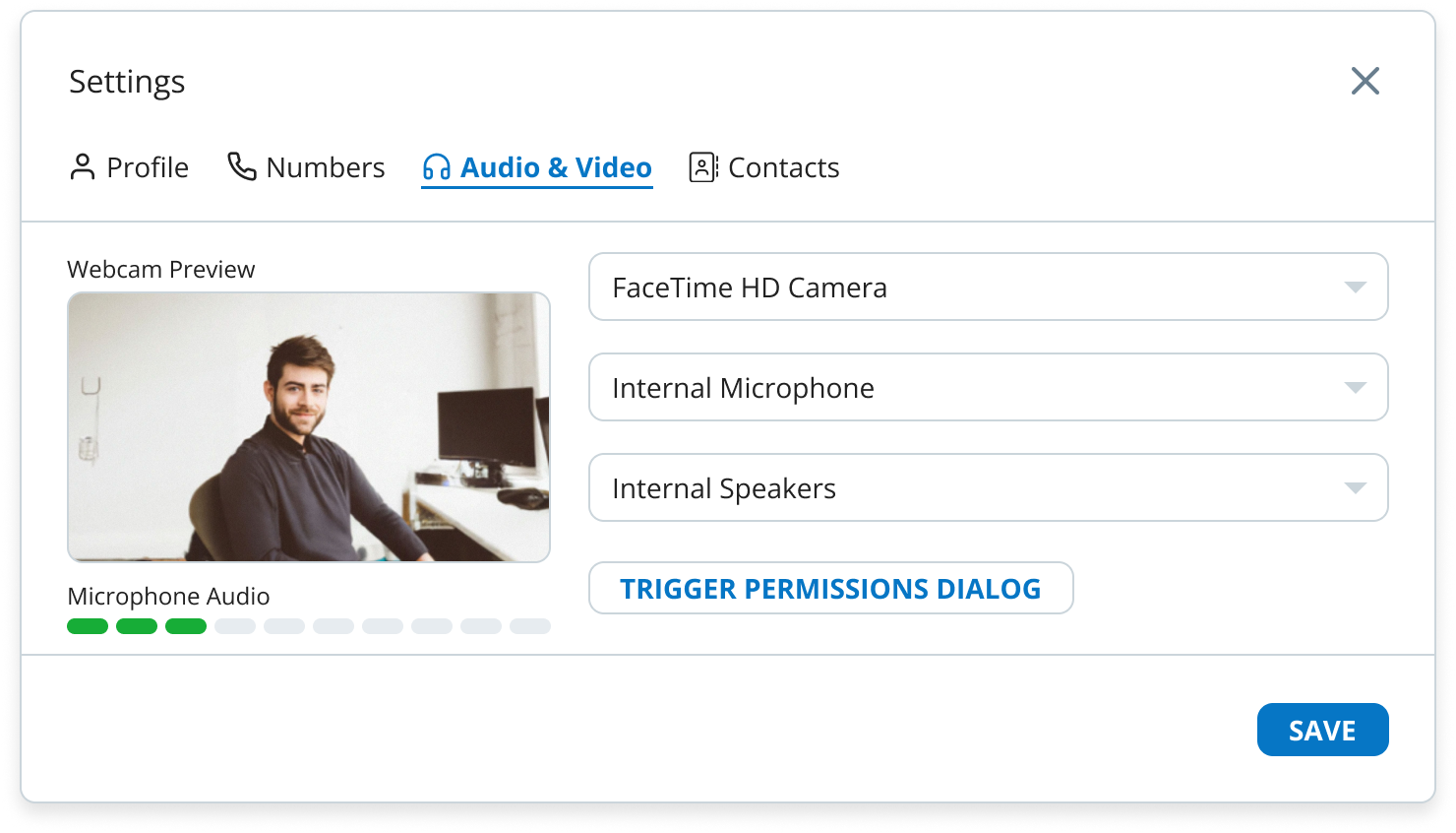 Enable camera, microphone, and notifications for the SIPcity Web App.