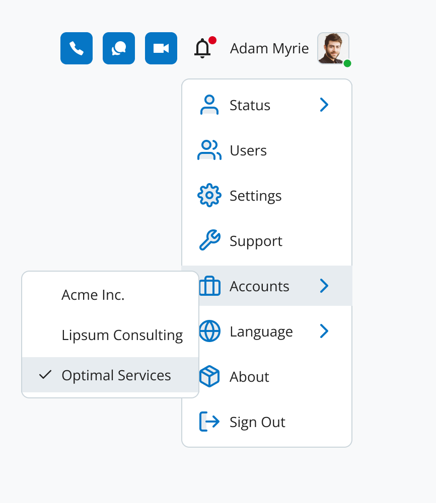 If you have multiple accounts, you can switch between them here. Go to User Settings > Accounts to select the account you want to use.
