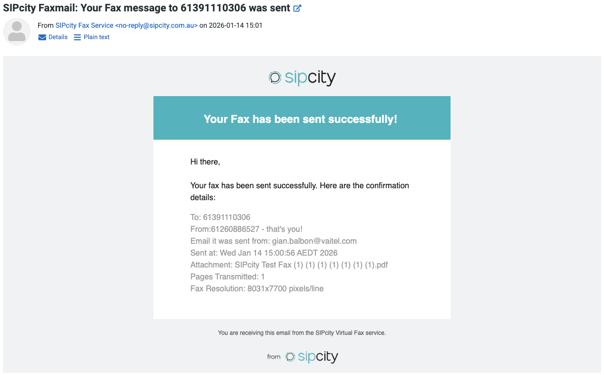 Send faxes by emailing documents to [number]@fax.sipcity.com.au (for example, [email protected]).