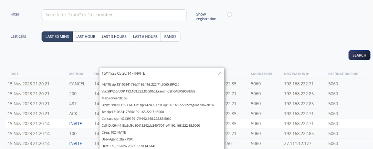 Trace is a diagnostic tool based on HOMER SIP capture that records and debugs SIP and RTCP media messages exchanged between endpoints on our network. It helps identify basic INVITE requests.